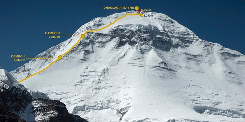 Mt. Dhaulagiri Expedition (8,167m). Mt. Dhaulagiri also known as white Mountain from Sanskrit, is a real giant among 8000 m peaks consisting of 5 major peaks with prominence ranging from 135 m to 3357 m. Dhaulagiri I (8,167 m) is also the 7th highest mountain in the world. And also one of more formidable peaks to climb with the first successful summit only in 1960. In terms of rise above the terrain Mt.Dhaulagiri is also unparalleled as it rises 7000 m over Kali Gandaki valley over horizontal length of 30 km, which by any standard is an impressive statistic.Mt. Dhaulagiri Expedition (8,167 m).,
